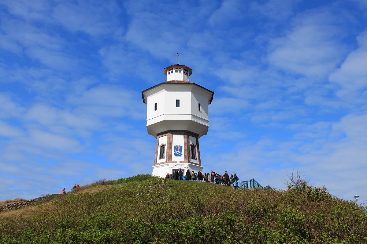 - Das Wahrzeichen der Insel, der Langeooger Wasserturm, ist immer ein Besuch wert. 33 Meter über dem Meeresspiegel befindet sich die Aussichtsplattform und bietet einen atemberaubenden Weitblick über die Insel.